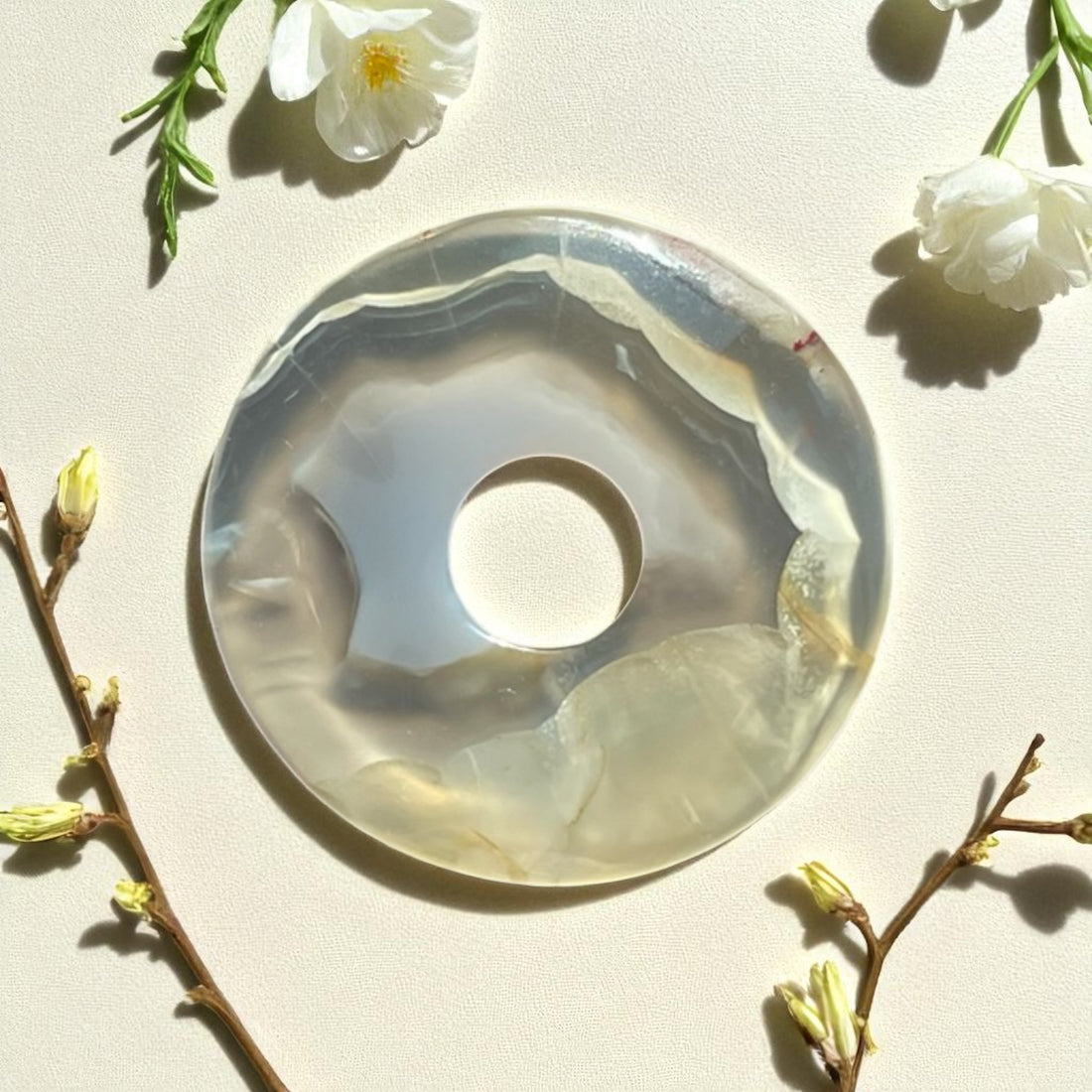 Donut AchatØ 3cmBeschreibung:Achat ist ein Stein der Stabilität und Erdung. Er stärkt das Selbstvertrauen, fördert...
