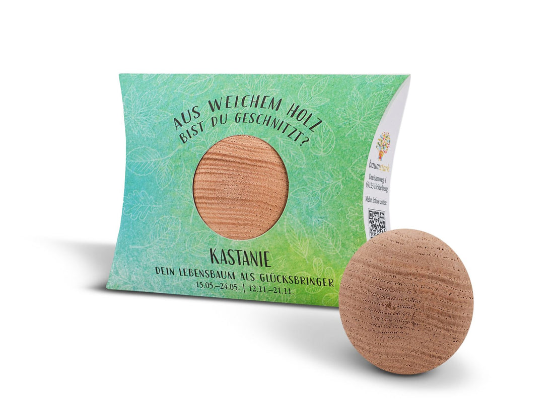 Handschmeichler vom persönlichen Lebensbaum als Glücksbringer Der Handschmeichler aus Kastanienholz ist attraktiv in einer Geschenkverpackung...