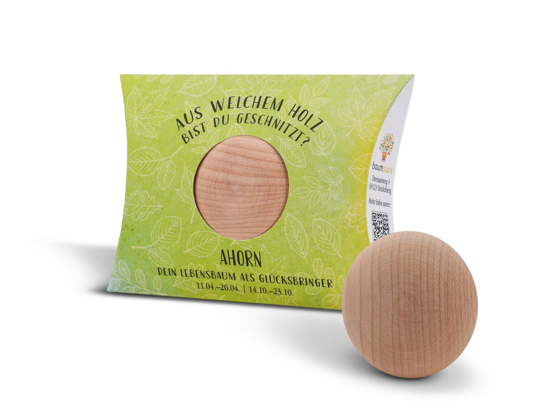 Der Handschmeichler aus Ahornholz ist attraktiv in einer Geschenkverpackung verpackt. Auf der Vorderseite der Geschenkverpackung...