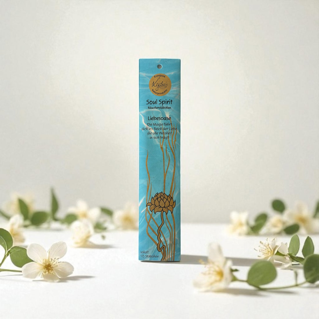 Liebesoase - ProbierpackungSoul Spirit Räucherstäbchen Inhalt:4 kurze RäucherstäbchenBeschreibung:Die Magie führt dich ins Reich der Liebe,...