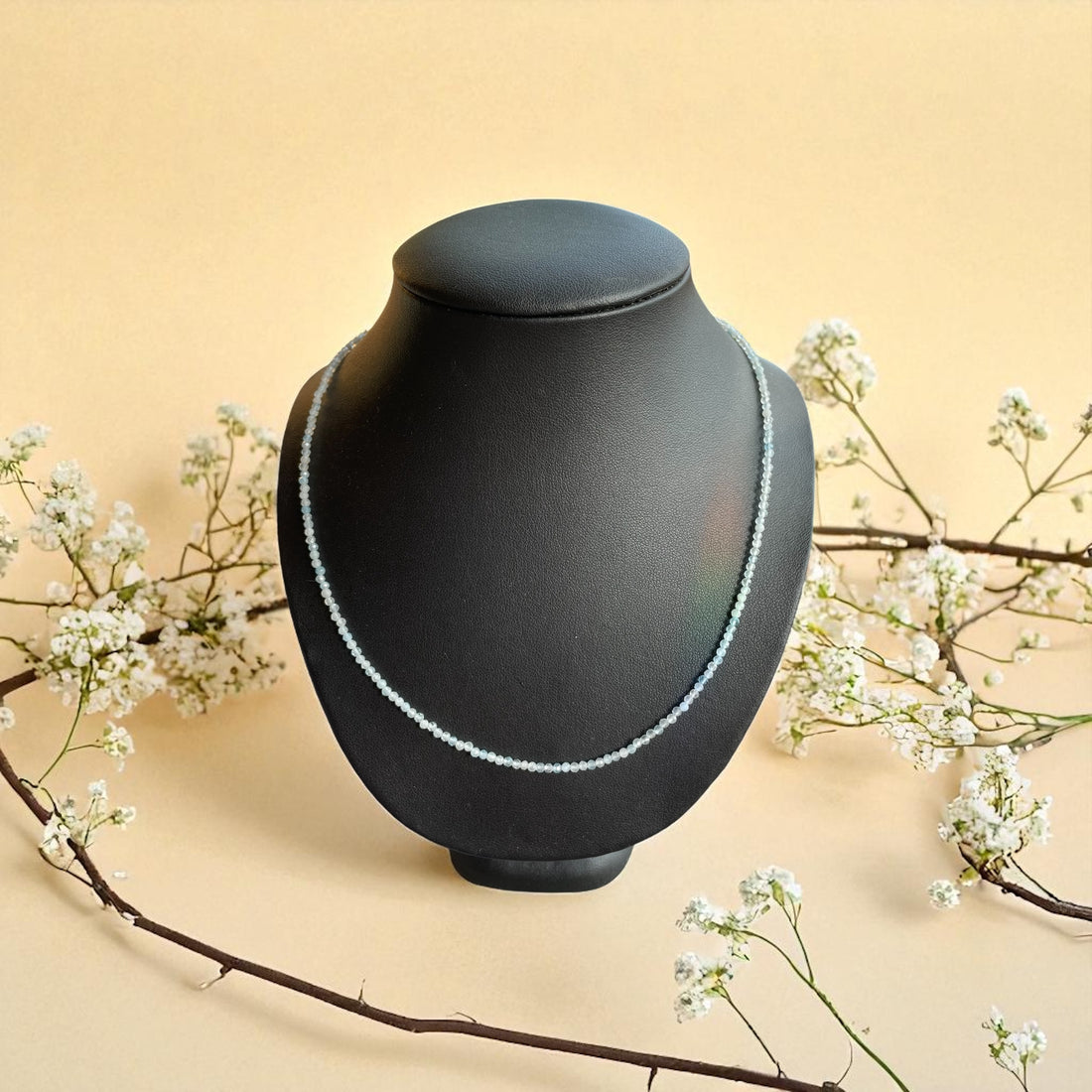 Aquamarin Ausdauer – Leichtigkeit – Stirn Chakra Die facettierte Aquamarin-Edelstein Halskette mit 2 mm Kugeln...