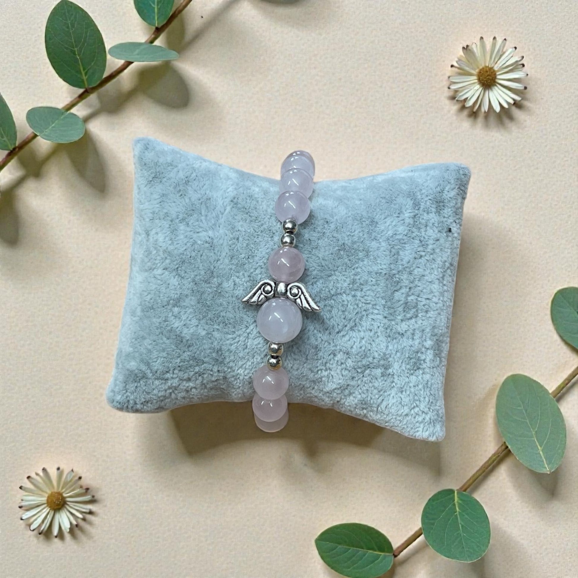 Armband Rosenquarz mit Engelsflügel Silber