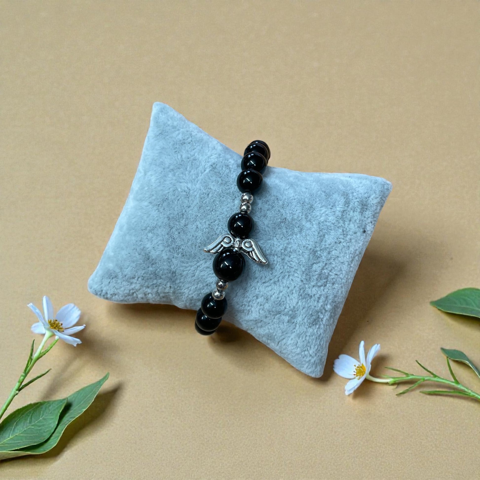 Armband schwarzer Turmalin mit Engelsflügel Silber