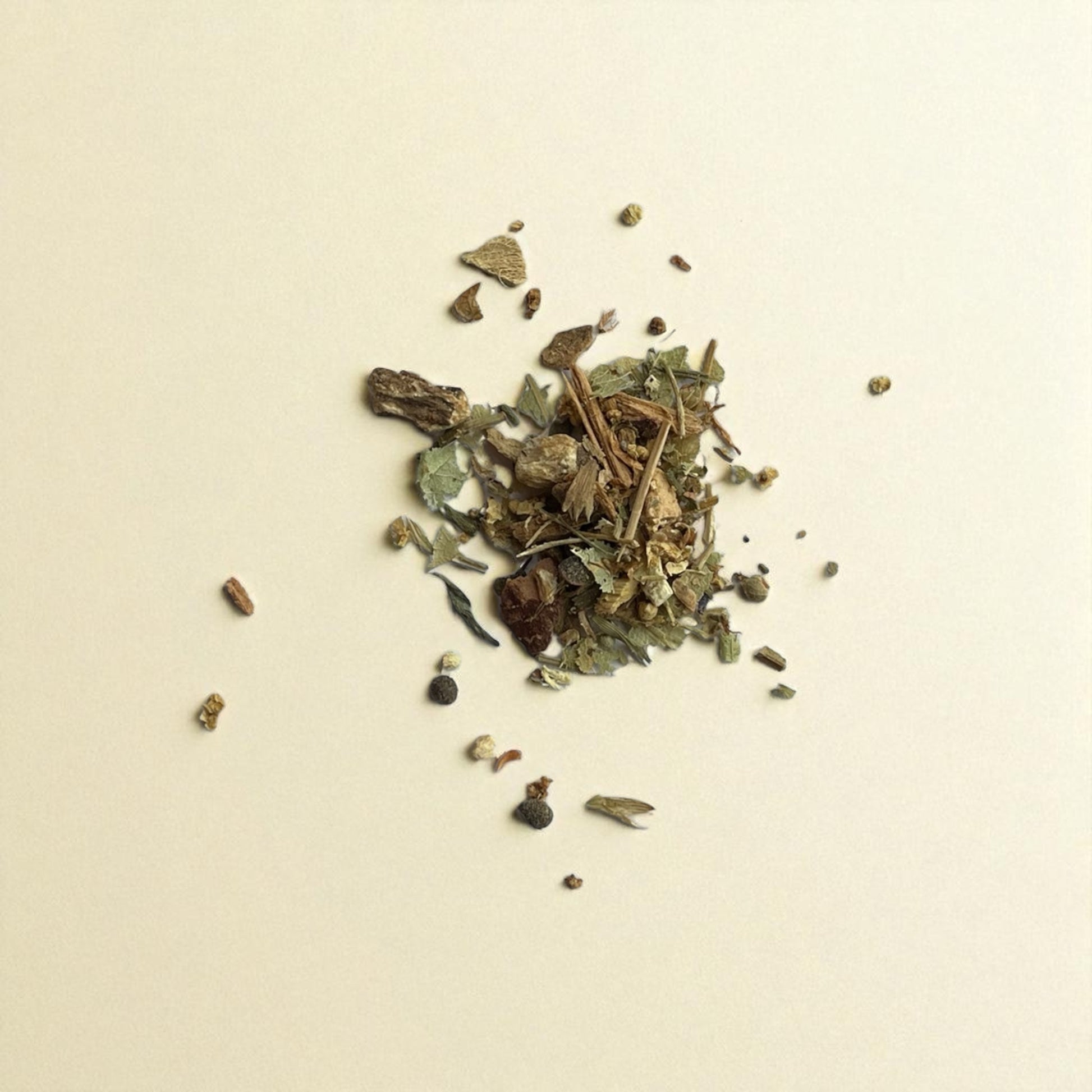 Galgant, Angelika, Ingwer, Holunderblüten, Asant, Süßholz, Tiliablüten, Ysop.