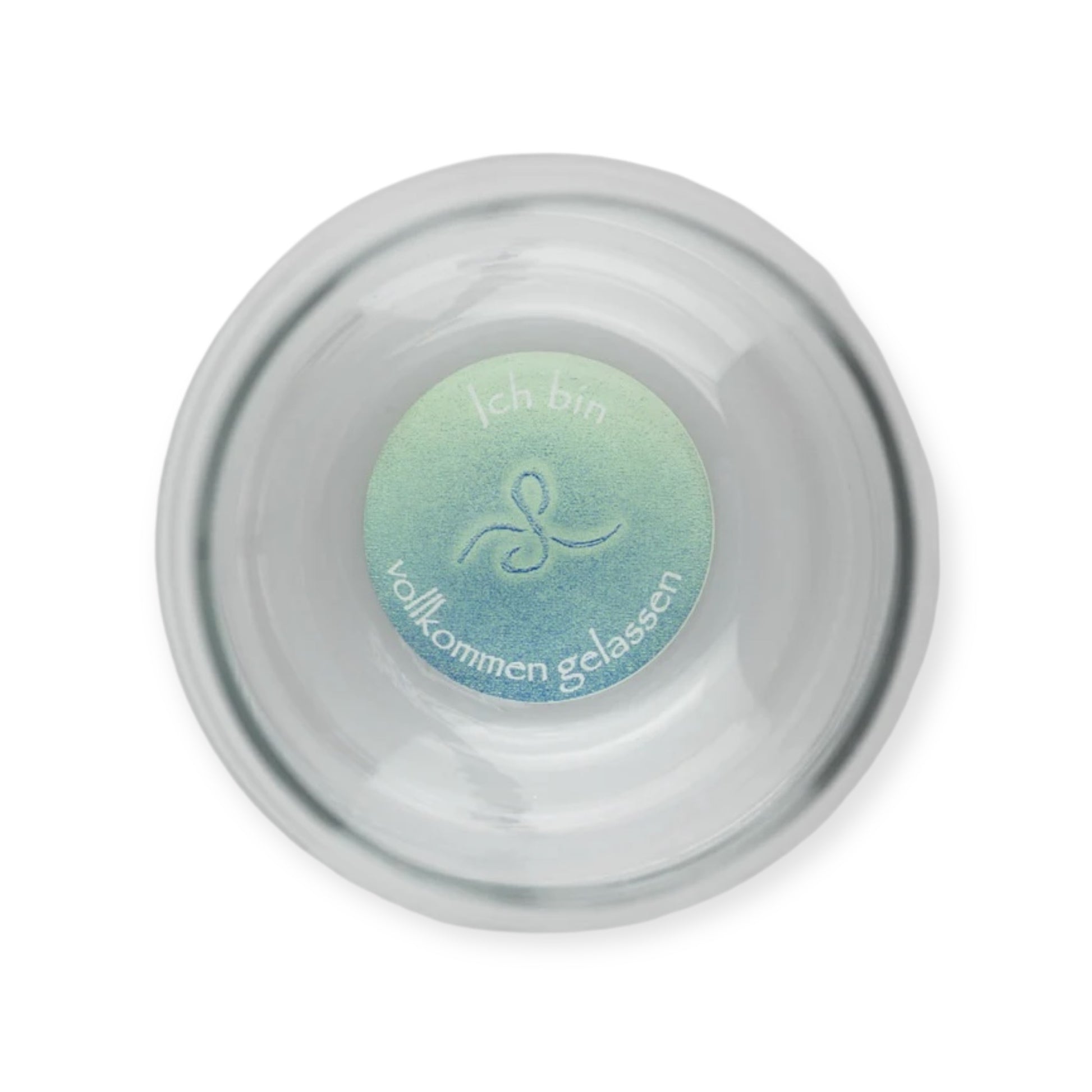Die Becher Mythos „I am completely ...“ sind mit verschiedenen Affrmationen im Boden des Bechers erhältlich. Die Affirmationen sind jeweils abgestimmte Gesamtkonzepte von Farb-, Symbol- und Wortgebung.