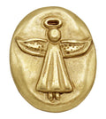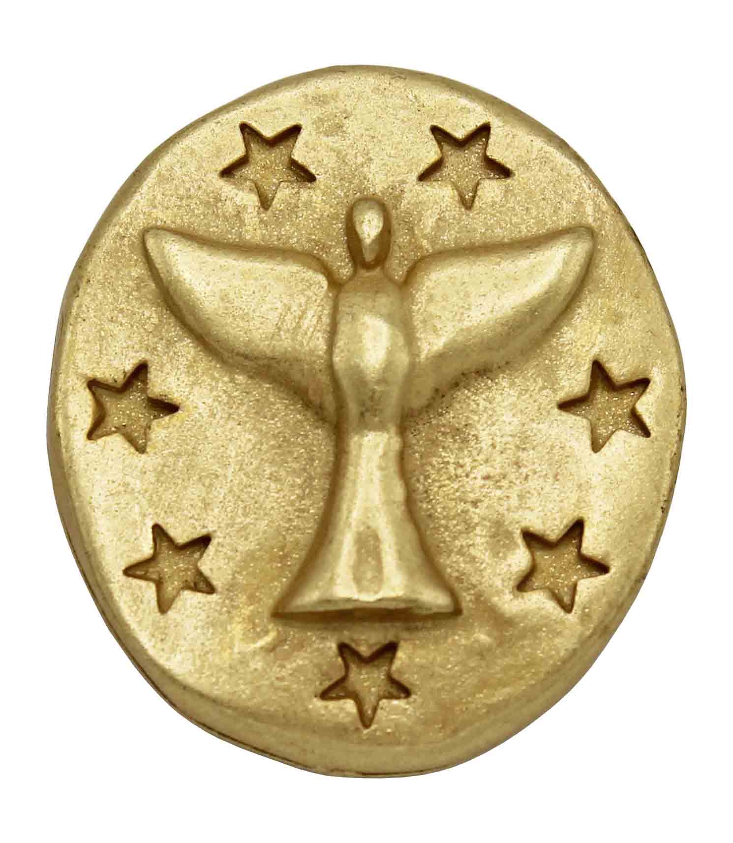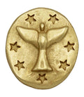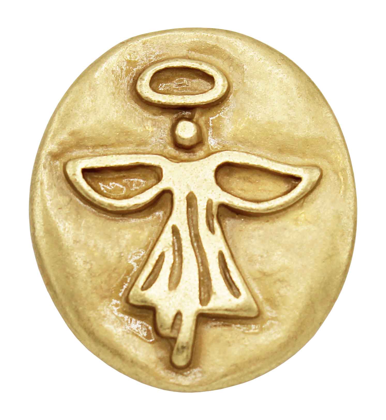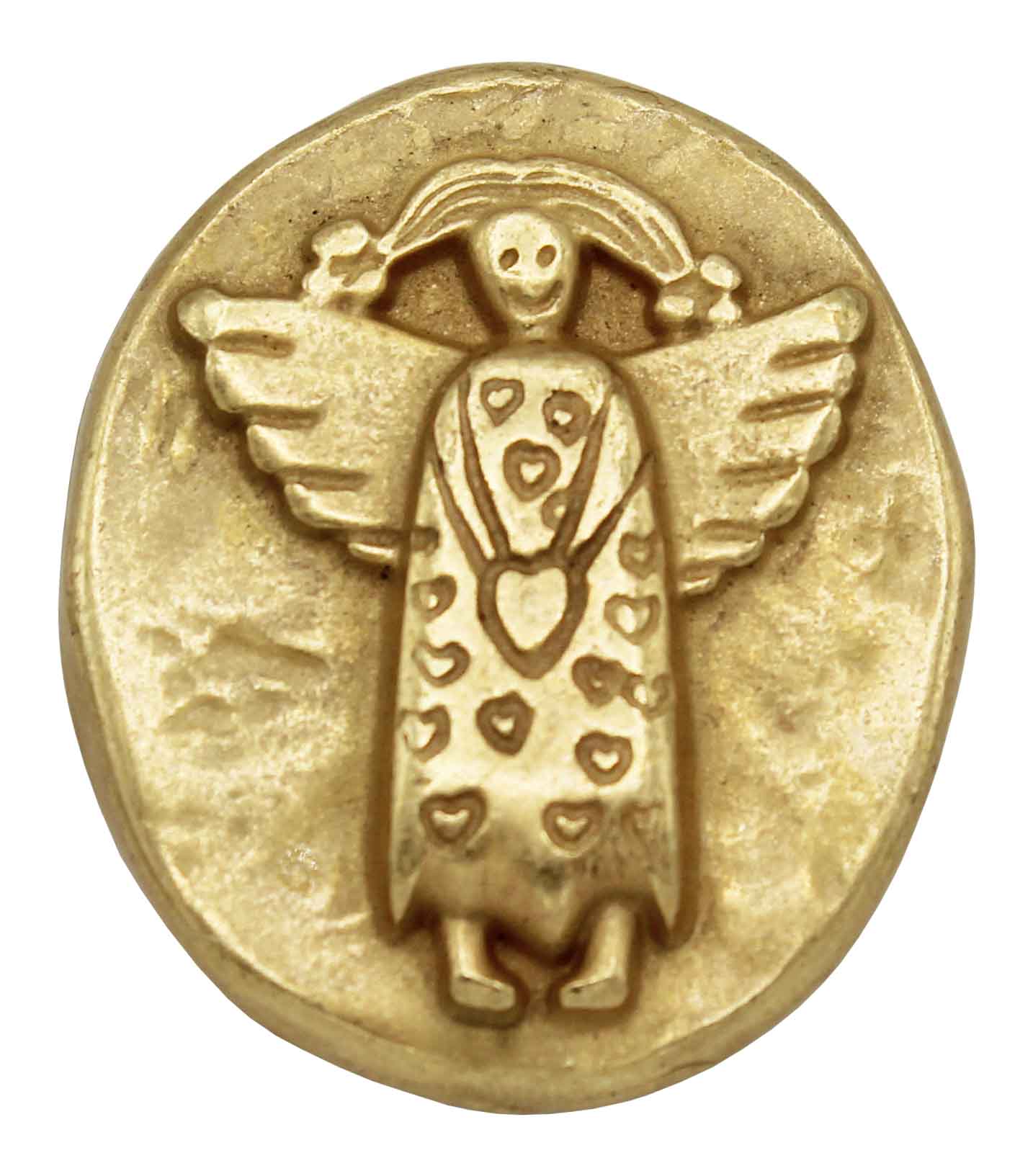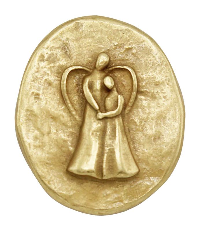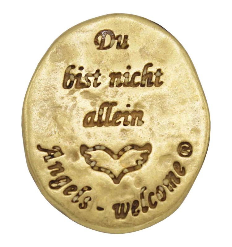 Matt vergoldete, ovale Engelsmünzen mit Engelsprägungauf der Vorderseite und liebevoller Botschaft auf der Rückseite.