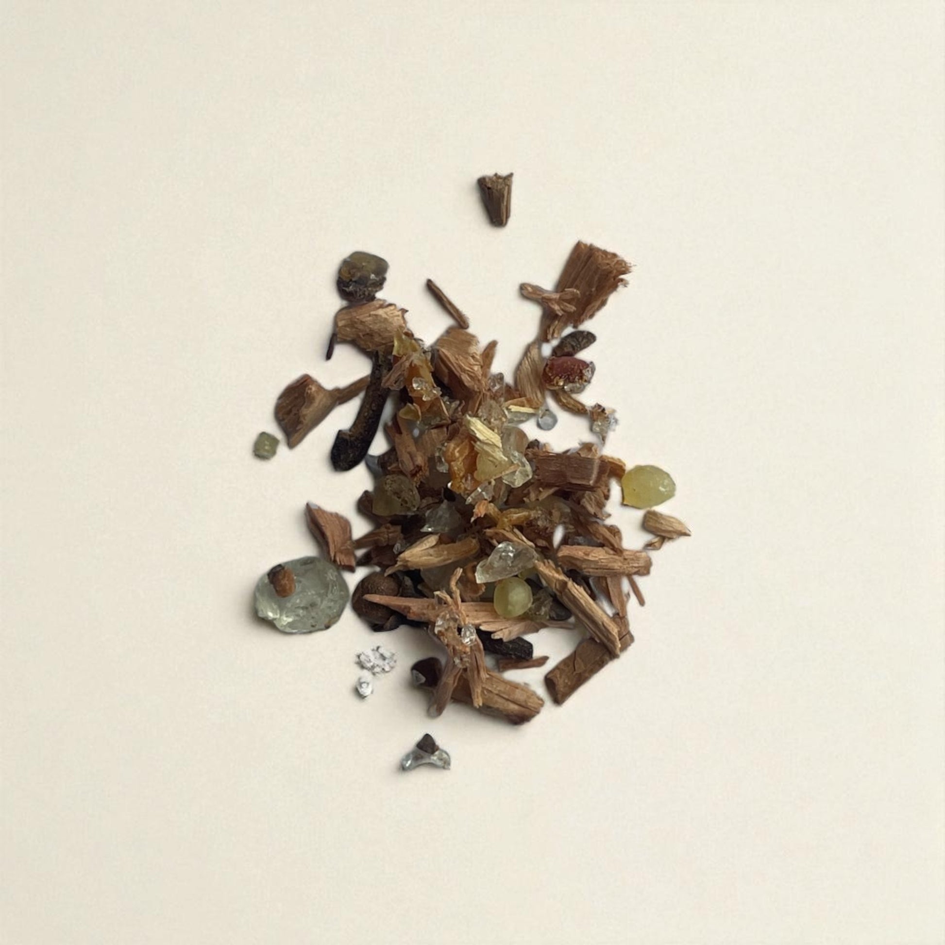Gewürznelken, Zeder, Zimt, Muskatblüte, Muskatnuss.