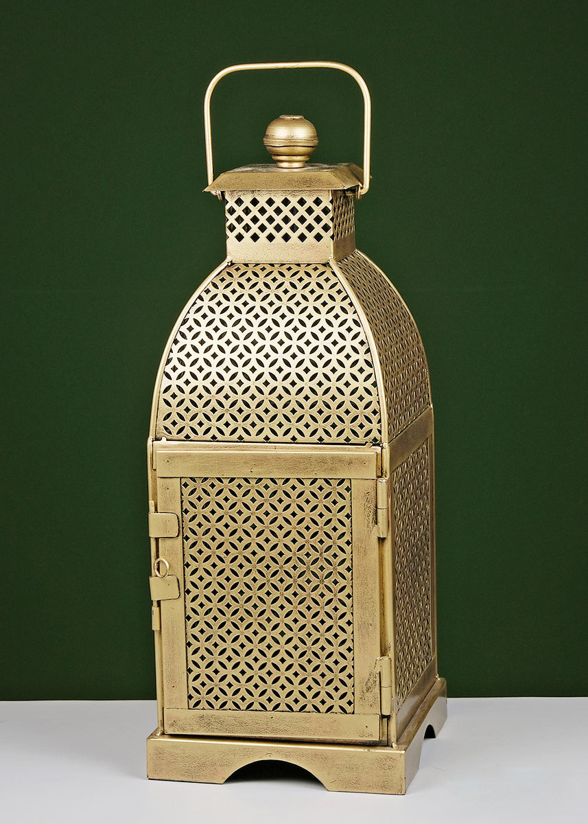 Dekorativer Teelichthalter mit einem Griff aus Metall. Geeignet für Kerzenlicht.