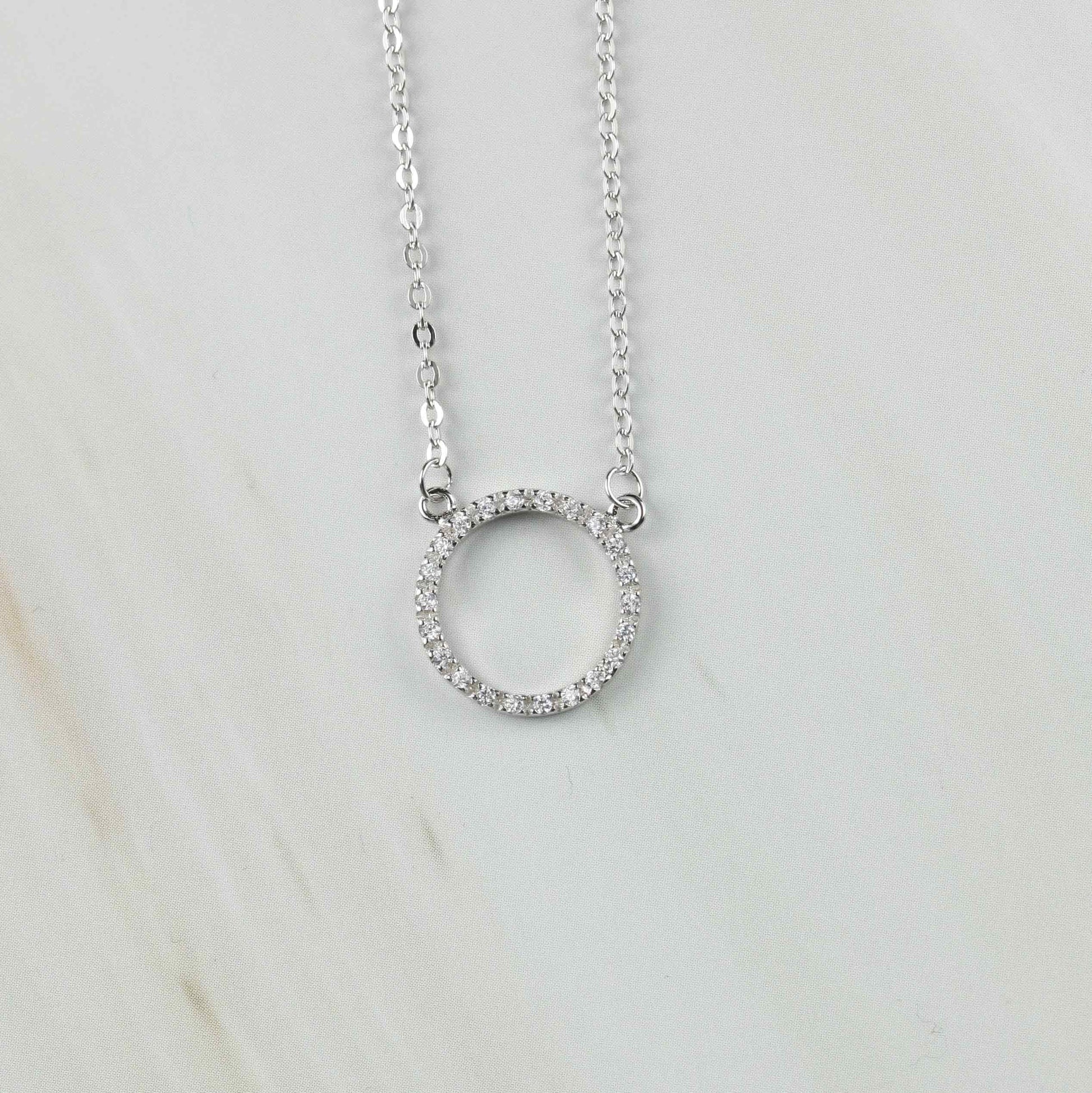 Strahlende Silberkette mit funkelndem Kreisanhänger – besetzt mit zahlreichen Glitzersteinen für maximalen Glow. Ein edles Statement für Glanzmomente im Alltag und zu besonderen Anlässen.
