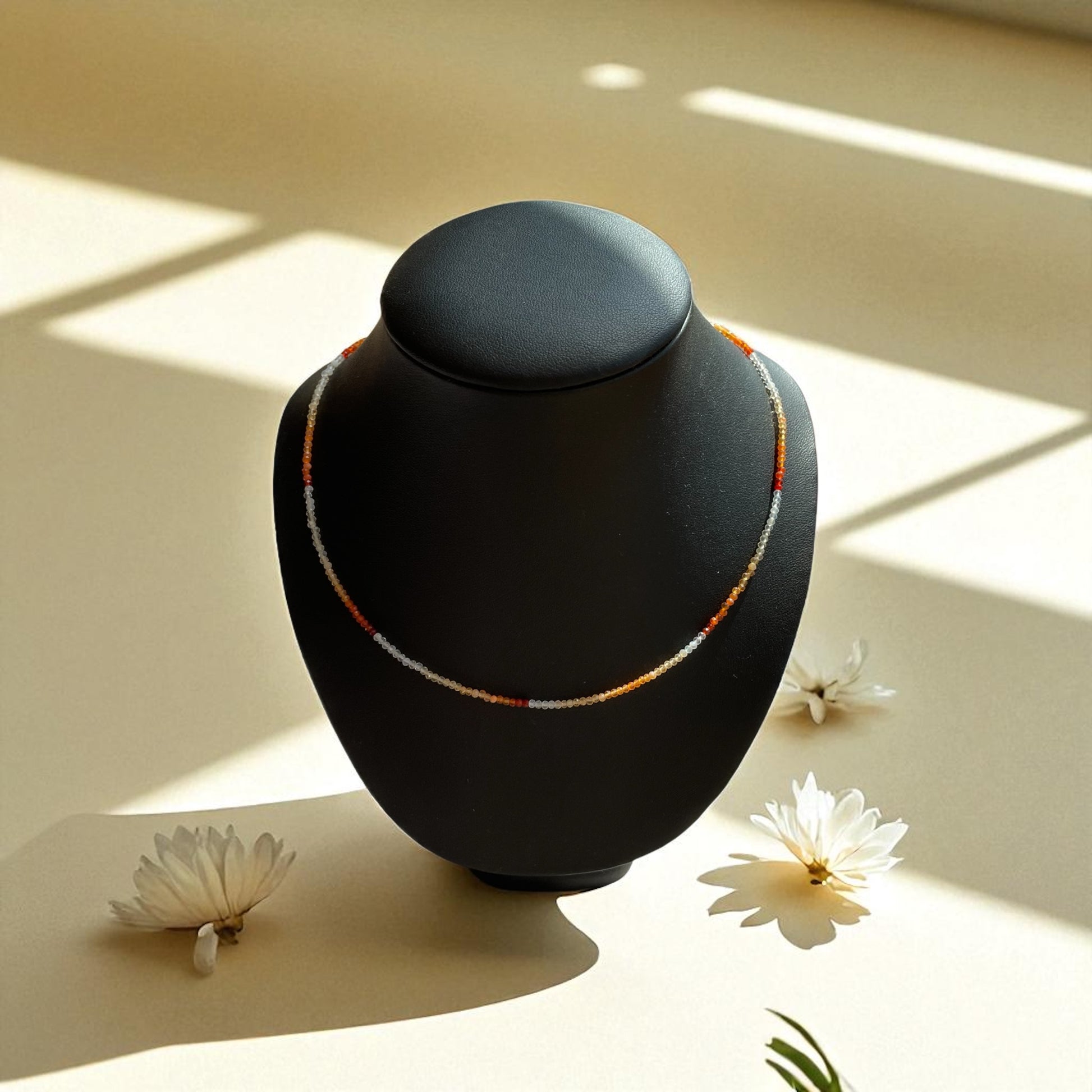 Die facettierte Edelsteinkette Opal mit Farbverlauf (2 mm, verstellbar von 40 auf 45 cm, mit Silberverschluss)