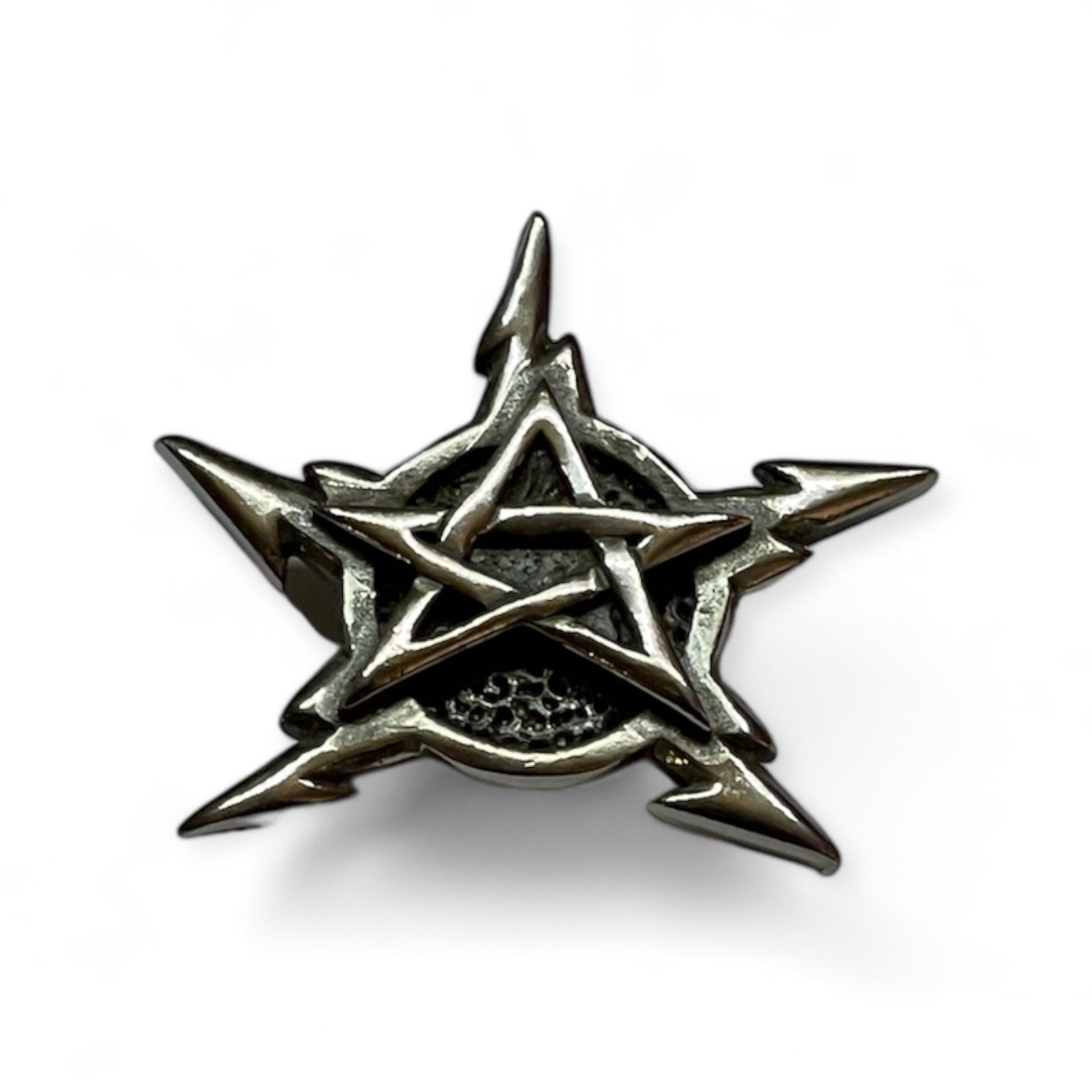 Das Pentagramm mit Zacken präsentiert eine präzise geometrische Form, bei der die fünf Spitzen des Sterns durch zusätzliche Zacken hervorgehoben werden. Diese Struktur betont die klare Linienführung und verleiht dem Symbol eine besondere Dynamik. Ideal für Anwendungen, die sowohl Ästhetik als auch symbolische Tiefe erfordern, verbindet das Design traditionelle Formen mit einer modernen kantigen Note. Es eignet sich hervorragend für dekorative Elemente, Schmuck oder grafische Gestaltung mit einem markanten, charaktervollen Ausdruck.
