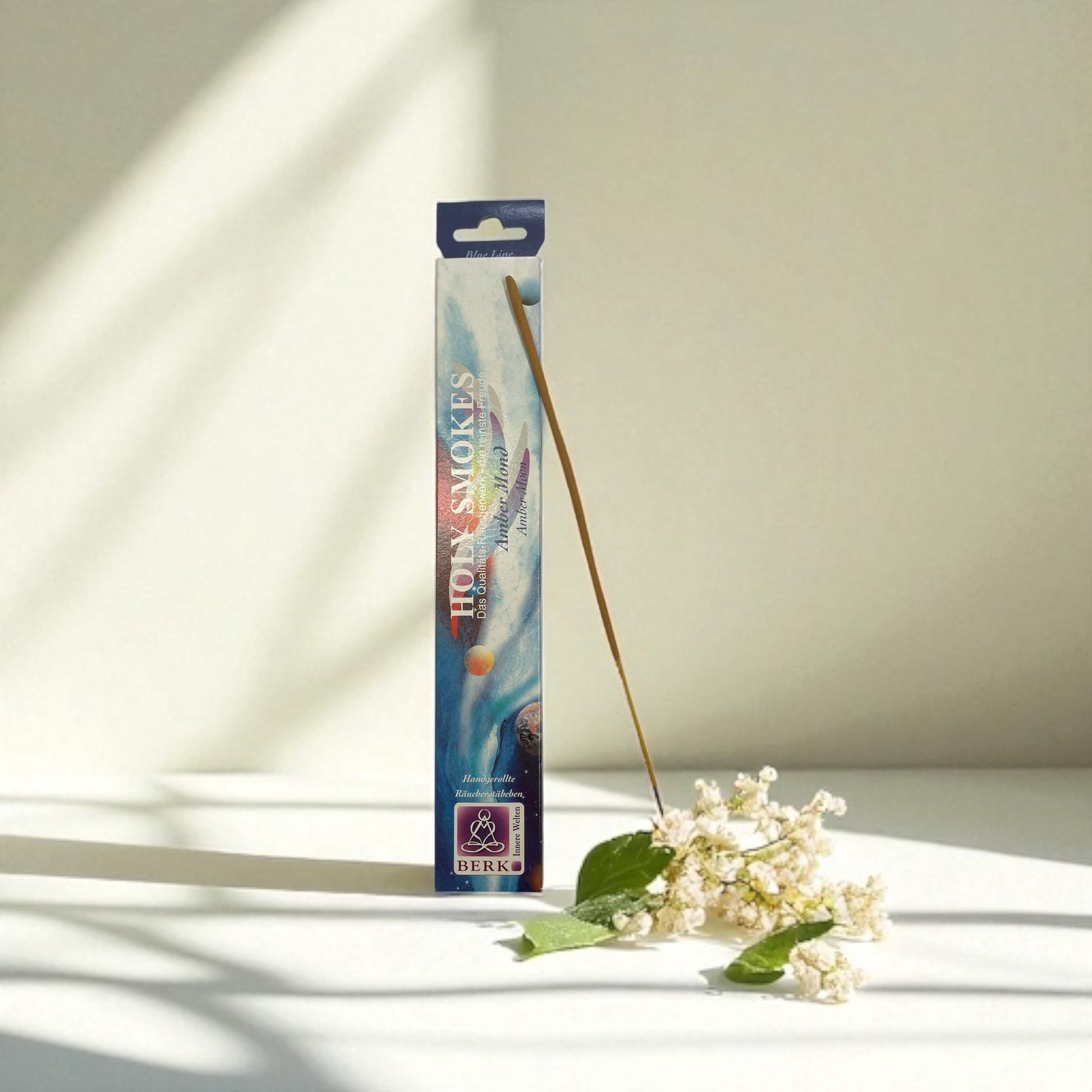 Holy Smokes „Blue Line“ Räucherstäbchen werden noch nach ursprünglichen, traditionellen Rezepten hergestellt. Es werden natürliche Substanzen wie Hölzer, Wurzeln, Harze, Kräuter und Öle gemischt und per Hand auf ein Bambusstäbchen gerollt.
