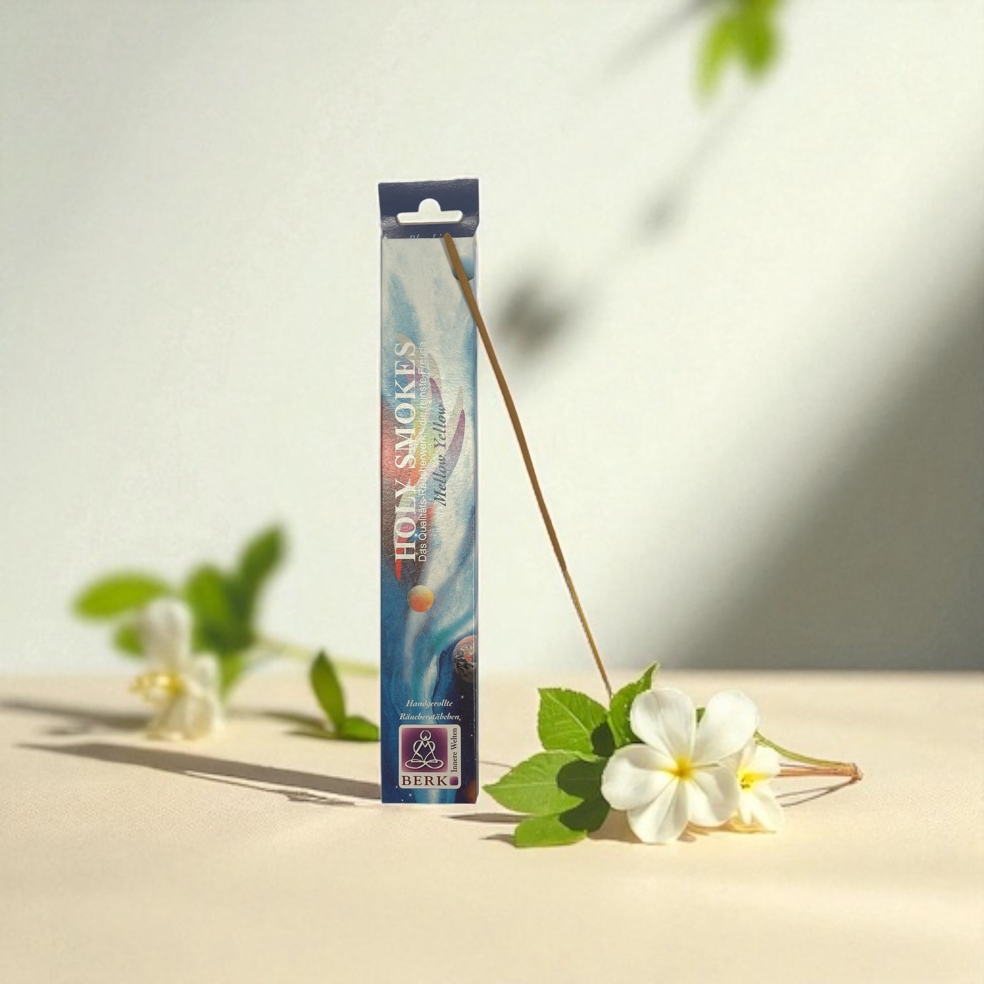 Holy Smokes „Blue Line“ Räucherstäbchen werden noch nach ursprünglichen, traditionellen Rezepten hergestellt. Es werden natürliche Substanzen wie Hölzer, Wurzeln, Harze, Kräuter und Öle gemischt und per Hand auf ein Bambusstäbchen gerollt.