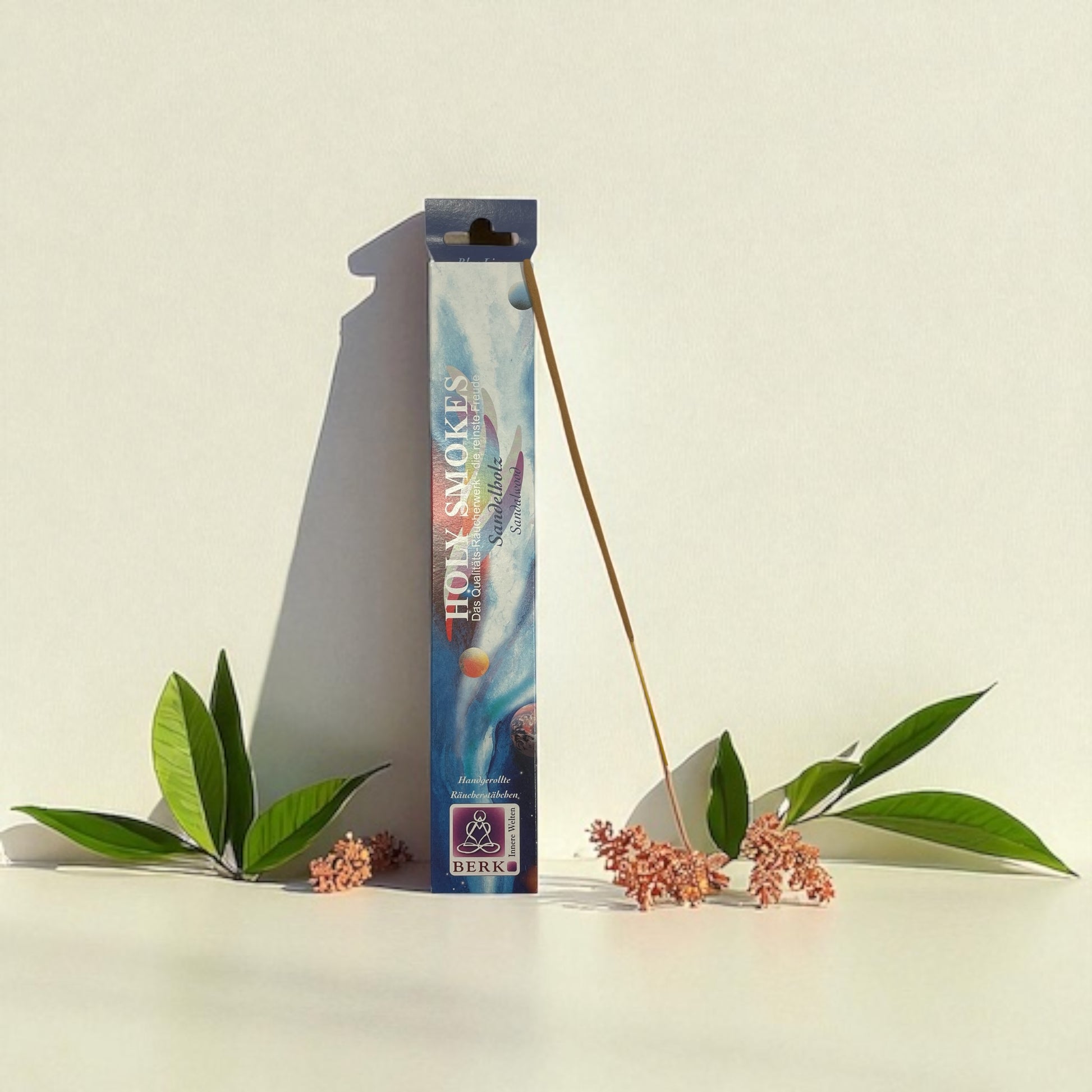 Holy Smokes „Blue Line“ Räucherstäbchen werden noch nach ursprünglichen, traditionellen Rezepten hergestellt. Es werden natürliche Substanzen wie Hölzer, Wurzeln, Harze, Kräuter und Öle gemischt und per Hand auf ein Bambusstäbchen gerollt.