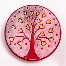 Lebensbaum Herzchen, rot Süßer, kleiner und bunter Räucherstäbchenhalter aus Speckstein. Handgraviert und bemalt. Dieser kleine Lebensbaum mit Herzblätter verzaubert jedes Ambiente.