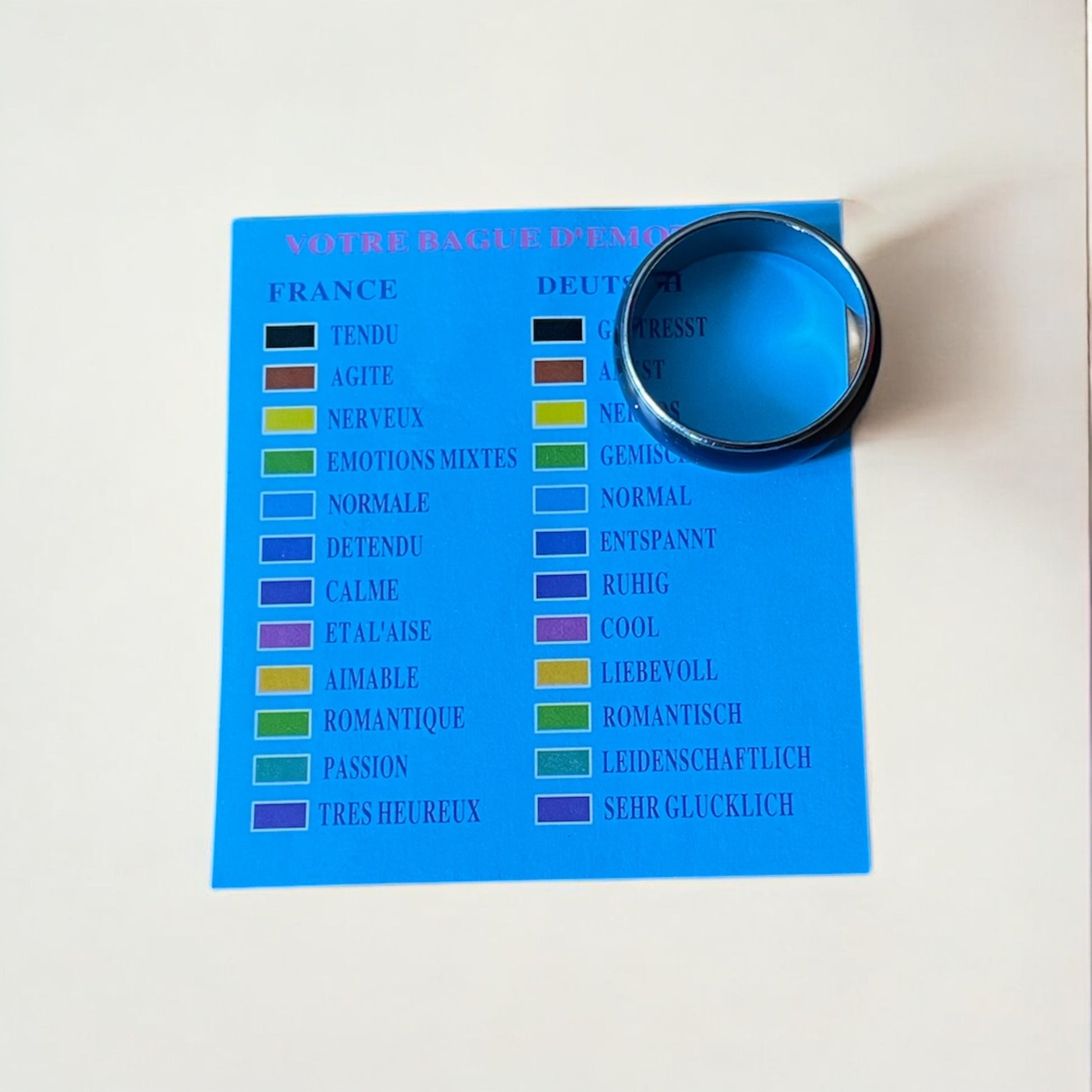 Die meisten dieser Ringe funktionieren so: Der Stein besteht aus thermotropen Flüssigkristallen, die sich in Reaktion auf Temperaturveränderungen bewegen und verformen. Wenn sich diese Kristalle bewegen, verändert sich ihre Farbe – und laut Stimmungsring-Logik steht jede Farbe für ein unterschiedliches Gefühl.