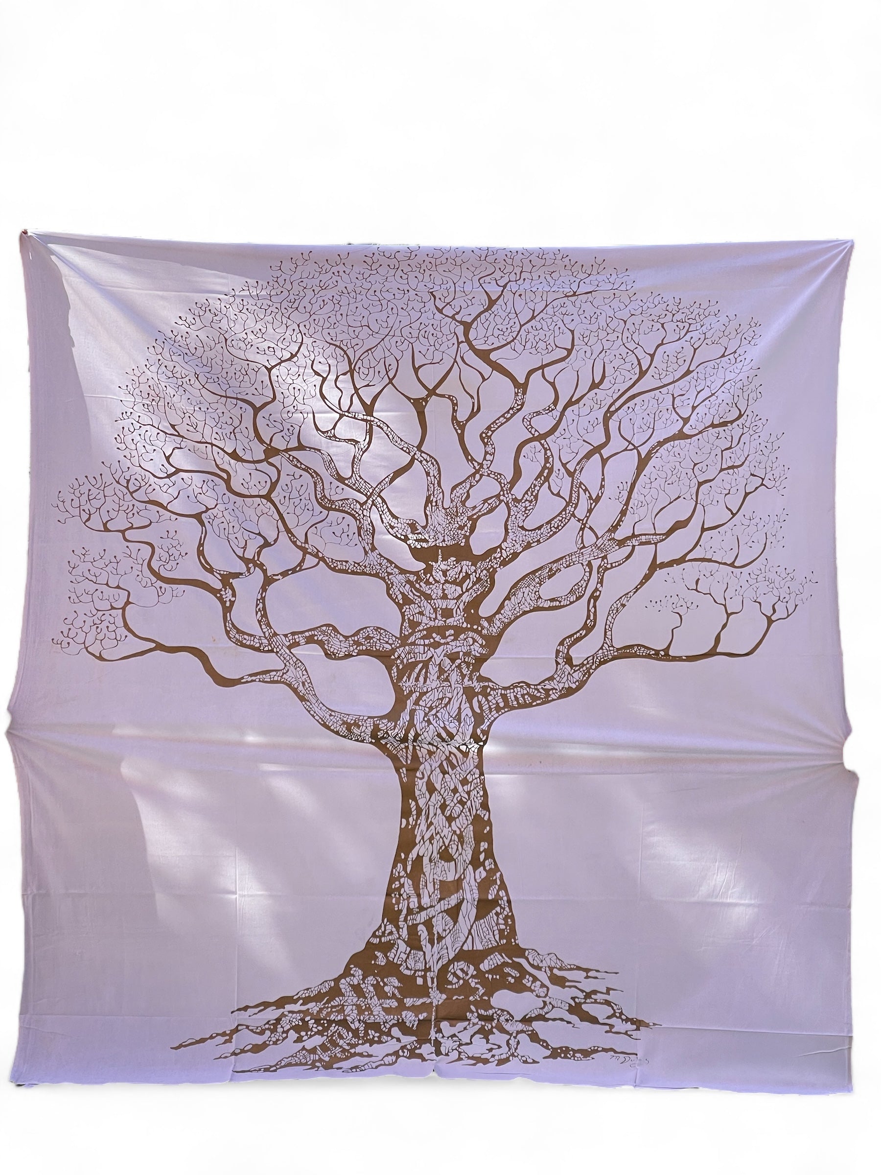 Tagesdecke "Dry Tree" - der Legende nach der Baum unter dem Alexander d. Große gegen Darius kämpfte. Gilt als Baum der Stärke. Größe: 240 x 210 cm (doppel) WEIß GOLD Auch verwendbar als Wandbehang, Picknick-decke, Sarong, Wickelkleid, Überwurf, etc…