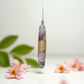 Amethyst: Stärkt unsere Intuition und öffnet für tiefe spirituelle Erfahrung. Mit Blume des Lebens.