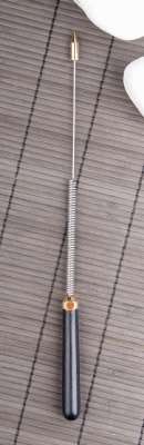Praktischer Tensor mit spiralförmigem Stahlstab zur Verstärkung, aufgesetzte Messingspitze, Messingschraube zum Verstellen der Rutenlänge, Holzgriff.