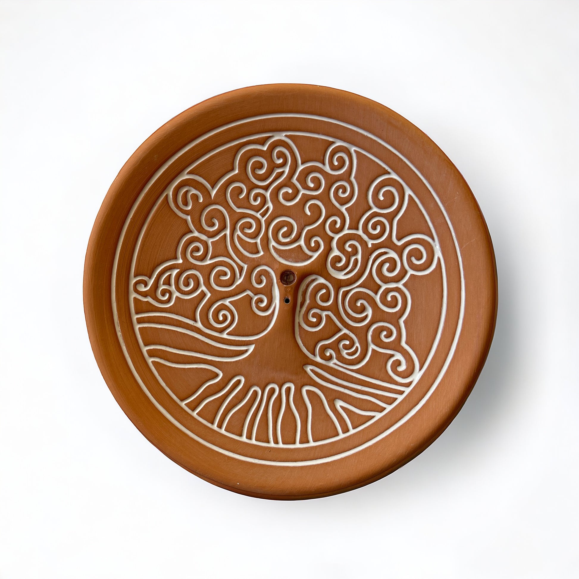 Erleben Sie die faszinierende Welt der magischen Räucherstäbchenhalter. Dieser ästhetische Räucherhalter verzaubert Sie in seinem natürlichen Ton, mit der Glasur des Lebensbaums. Nutzen Sie alternativ die Schönheit dieser Schale, indem Sie Räuchersand und Räucherwerk hinzufügen.